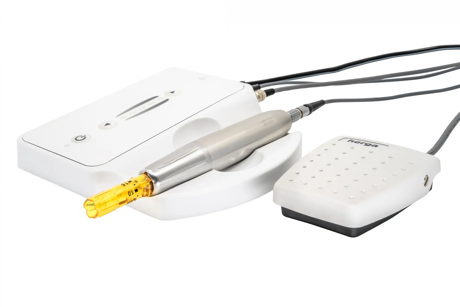 The Foot Pedal is an accessory to the MDerma System. The foot pedal will allow the user to turn the power to the Hand Device off and on by simply stepping on the switch. The foot switch is not required for full operation of the System.