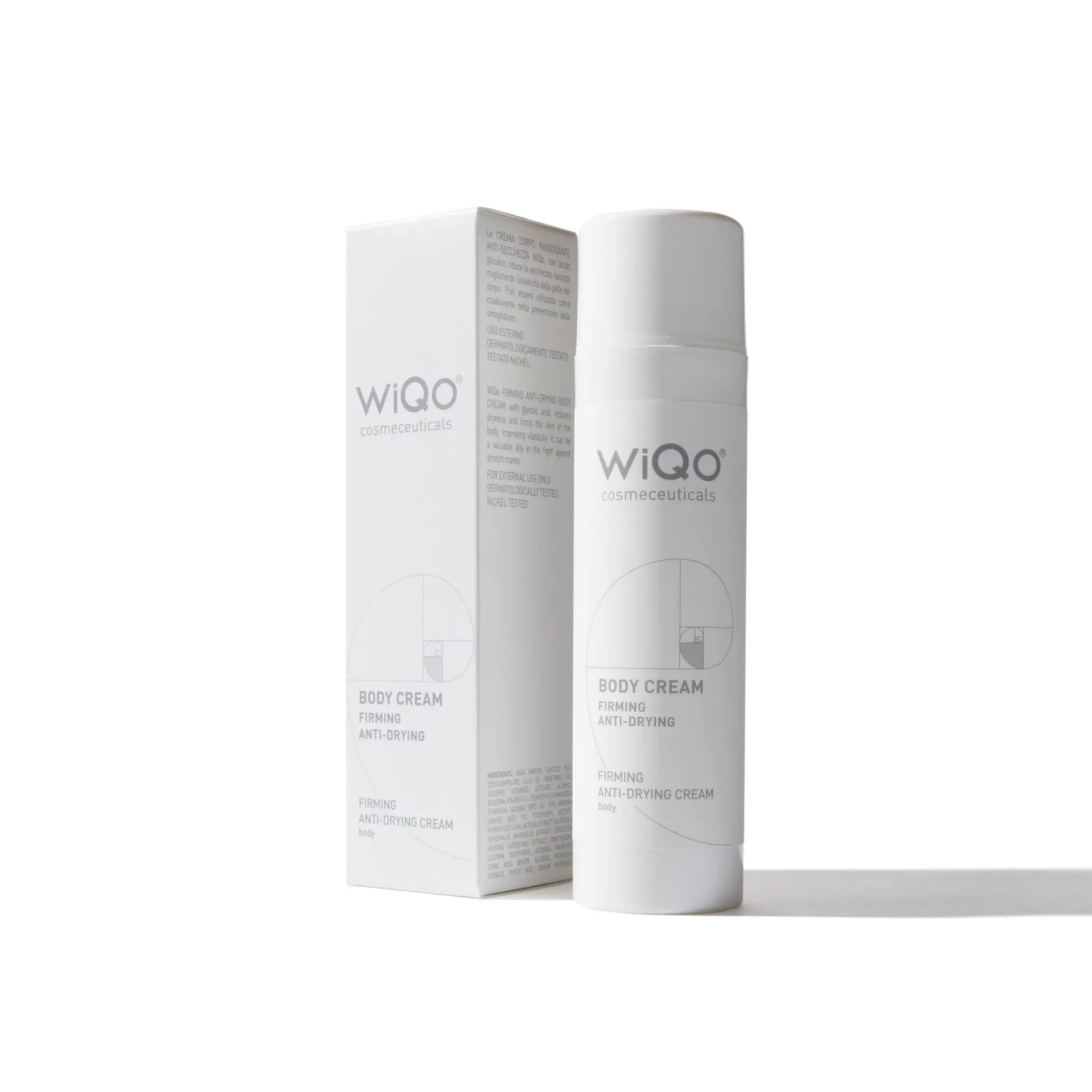 This body cream combines the characteristics of WiQo SMOOTHING FLUID and the NOURISHING AND MOISTURISING CREAM. This product’s low pH stimulates an increase in the thickness of the skin, thus combating age-related thinning. The glycolic acid regulates the thickness of the stratum corneum, thus making the skin smoother and encouraging hydration.