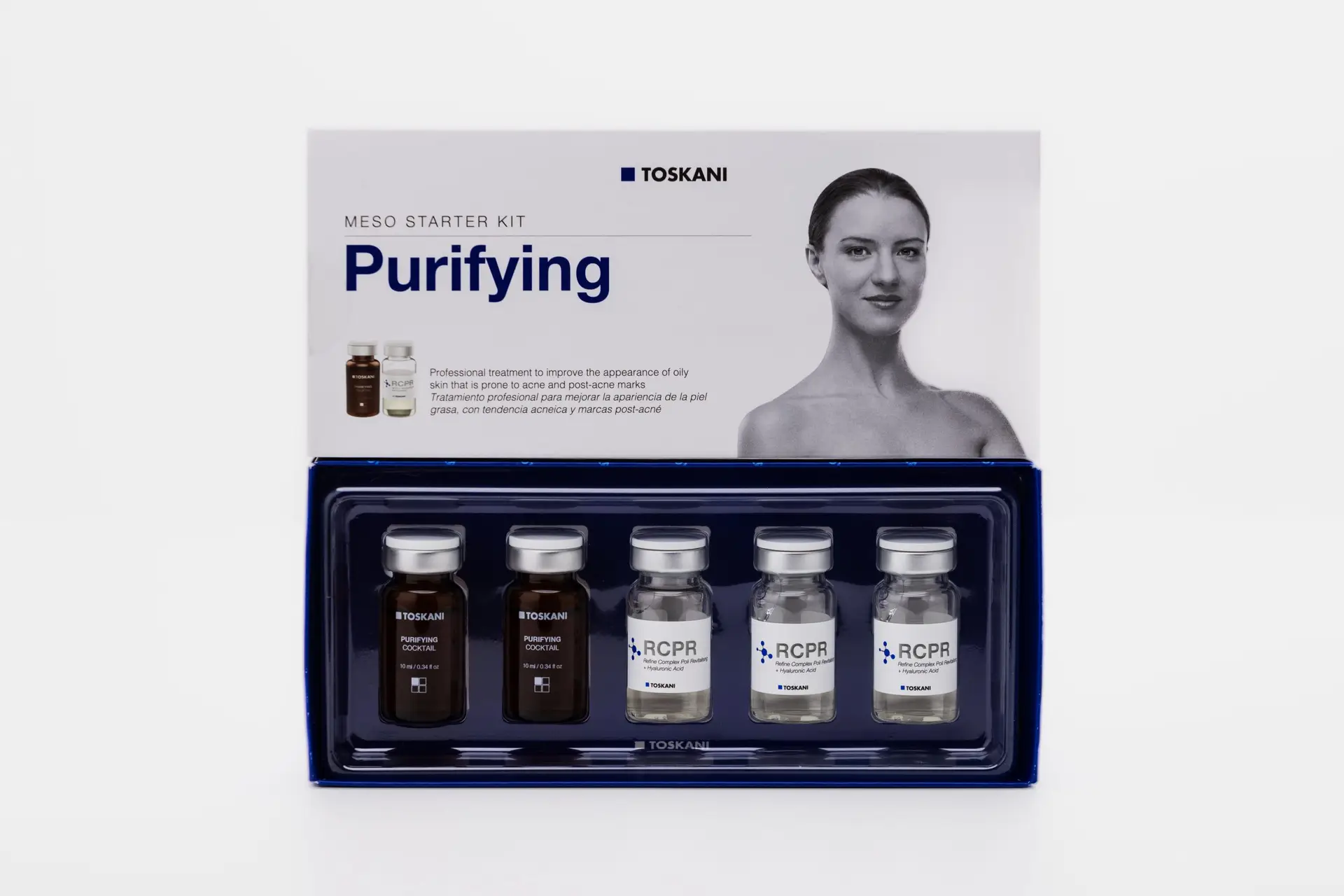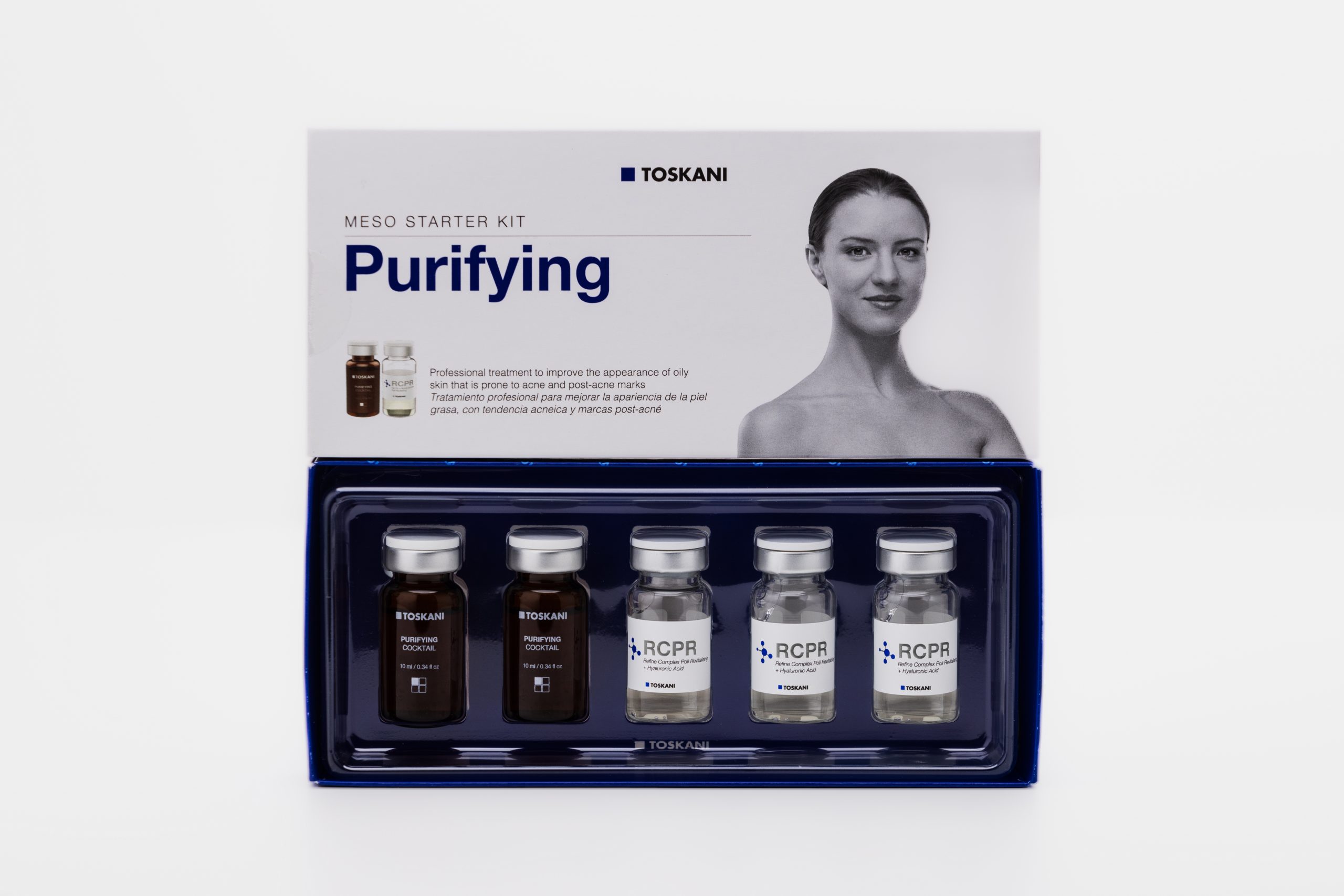 The Purifying Meso Starter Kit contains a unique combination of products that are specially designed to treat oily or acne-prone skin. Its ingredients help remove inflamed spots, shrink pores and post-acne marks.