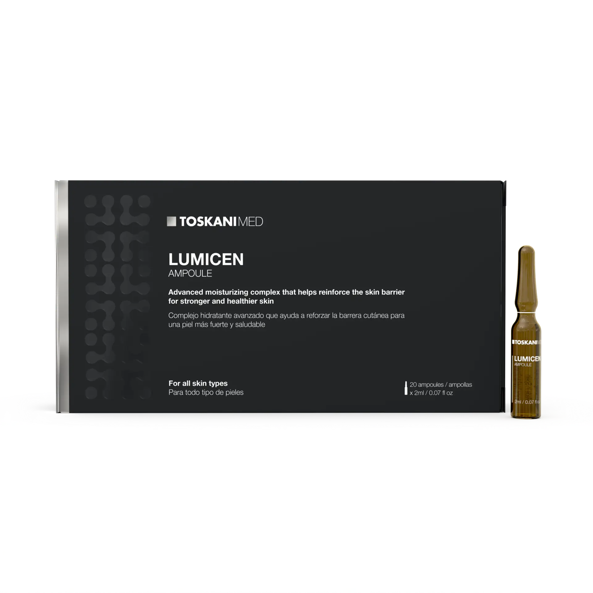 LUMICEN AMPOULE is a sterile solution developed with low molecular weight PDRN that is quickly absorbed into the skin layers. Its action helps to enhance the repair of oxidative damage, protects against oxidation and photoaging, providing greater skin health and homeostasis.